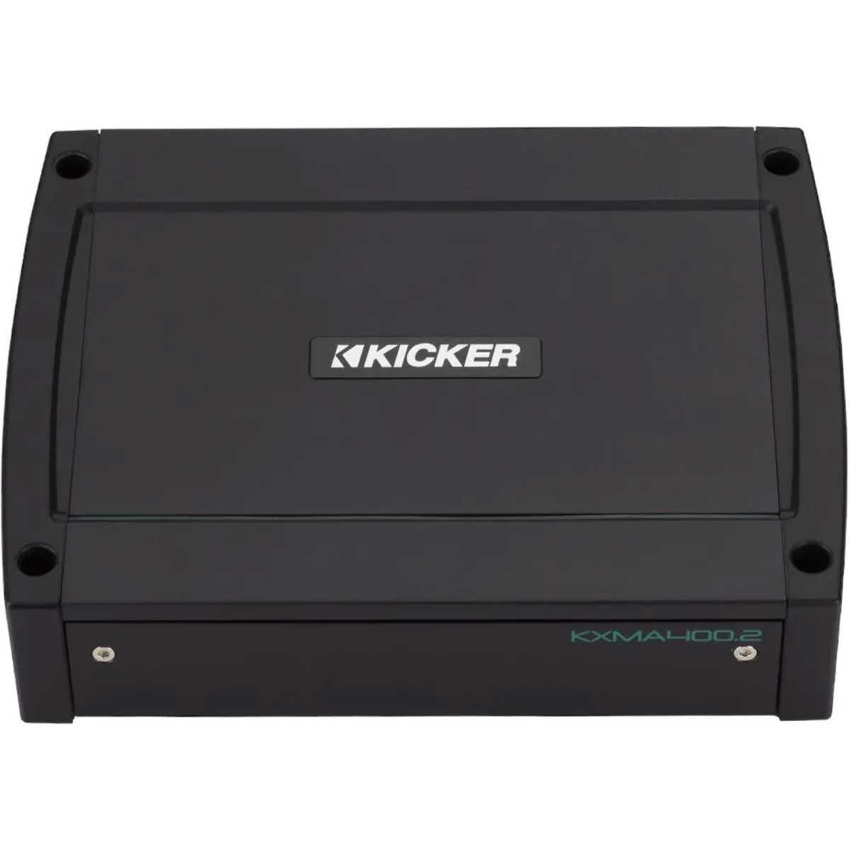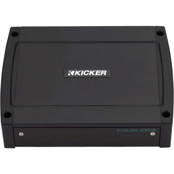 Powerful and high-end, the KICKER KXMA400.2 marine amplifier gives your 12 V audio system a real boost. It can be installed as a stereo or bridge amplifier up to 400 W RMS, and is easy to adjust thanks to its 24 dB active crossover and KickEQ 0-6 dB.