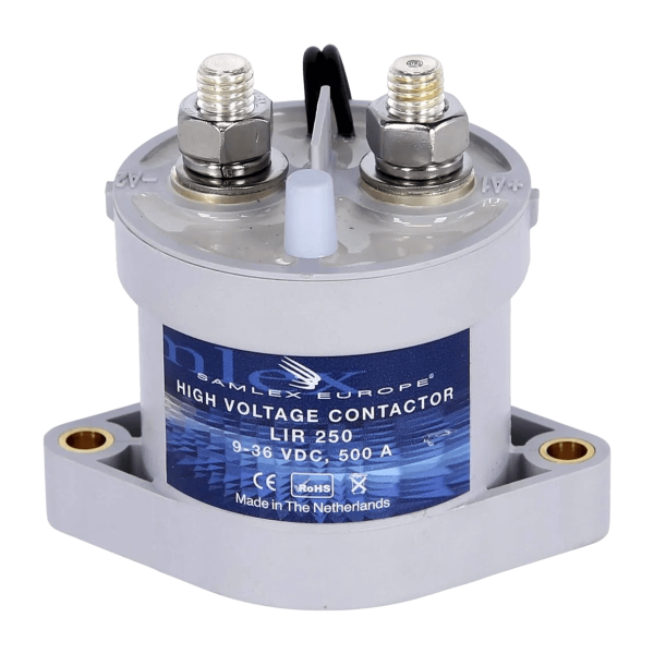 The Samlex 12/24 VDC 500A monostable power relay secures the on-board electrical installation. Designed as a protective relay, it cuts in to limit overloading and deep discharge, particularly with Super B 50, 100 and 160Ah batteries. Waterproof and rugged for marine environments, it is suitable for high-current circuits in continuous service.