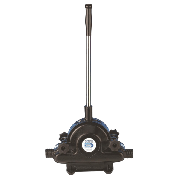 The Amazon Warrior manual pump from Jabsco is designed for draining black water, ballast tanks and dewatering. This double-acting manual pump is designed for deck, bulkhead or deck mounting on large and medium-sized boats.