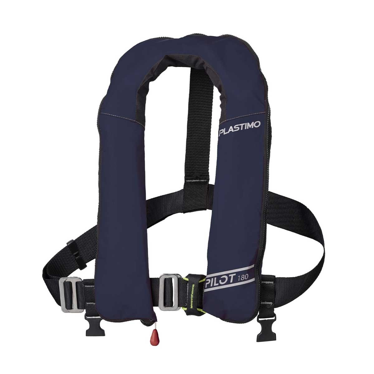 Designed for pleasure boating and professional activities, the Plastimo Pilot 180 automatic UML Elite navy blue vest offers 180N buoyancy, an integrated harness with webbing under-skin and a flashlight.