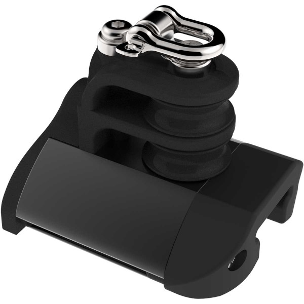 Designed for T1-size Lewmar HTX rails and carriages, this rail stop does more than just block a stroke. Thanks to its double sheave and ringot, it can also guide and cleanly take up control lines.