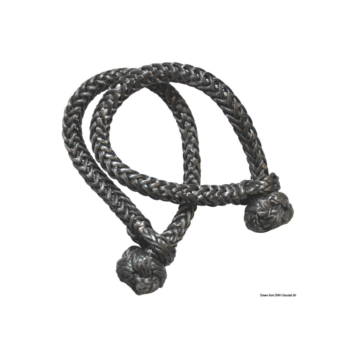 Textile shackles are handcrafted with a Dyneema D12 end Marlow without a sheath. Compared with a steel shackle, the textile shackle offers excellent resistance while being very light.