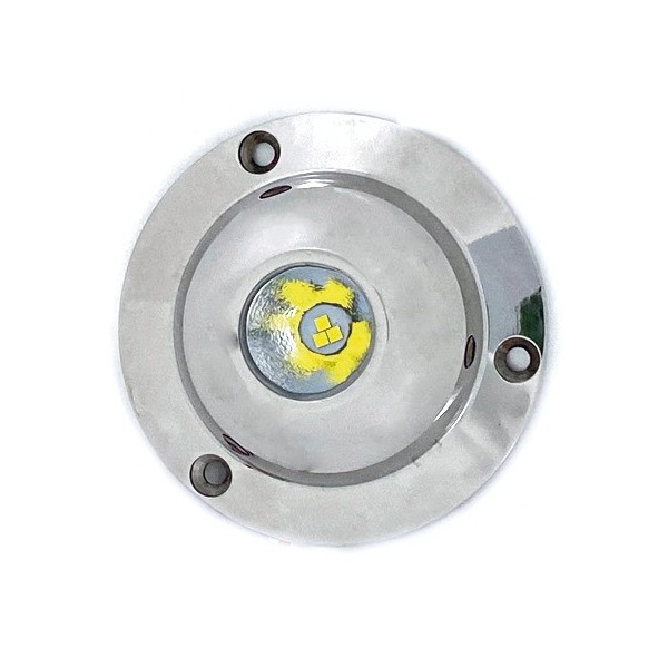 The "Eye" LED underwater light emits a powerful white halo thanks to its 3 x 3 W LEDs (total 160 lumens). Its AISI 316 stainless steel housing with resistant borosilicate glass guarantees robustness and IP68 waterproofing. Powered by 12/24 V, it can be installed without flush-mounting and used out of the water.