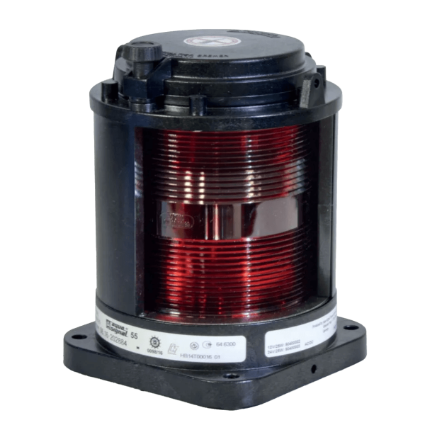 The Aqua Signal Series 55 port light produces a red light and is designed for boats from 20 to 50m. It has a range of 2 nautical miles. VERITAS-approved series. Lights marked with an anchor are approved for European river navigation. Body in black polycarbonate reinforced with fiberglass and stainless materials. IP56 protection.