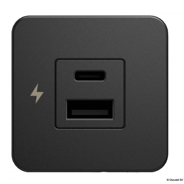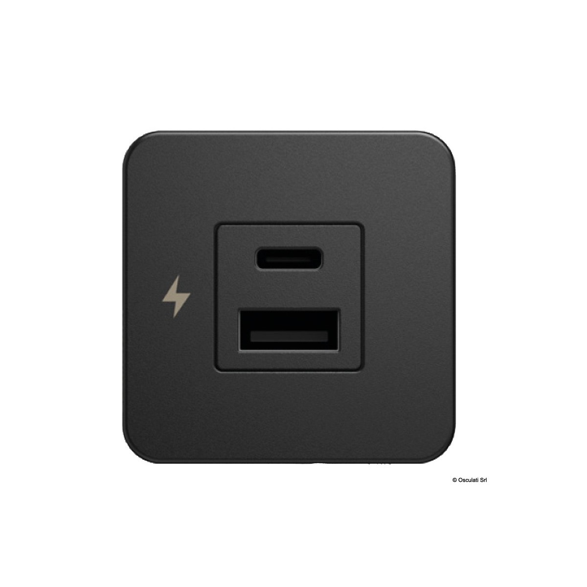The Tile dual USB (A+C) socket offers elegant, high-performance charging solutions, specially designed for marine interiors. With stylish bezel options in matte black or high-grade 316 brushed stainless steel, these chargers blend perfectly into luxury marine environments. With a compact 40 mm footprint, they require a 29 mm-cloche saw for easy installation.Tiny combines functionality and style, making it the ideal choice for modernizing your boat's interior. Enhance your boat's space with this practical and sophisticated solution for the daily recharging of your devices.