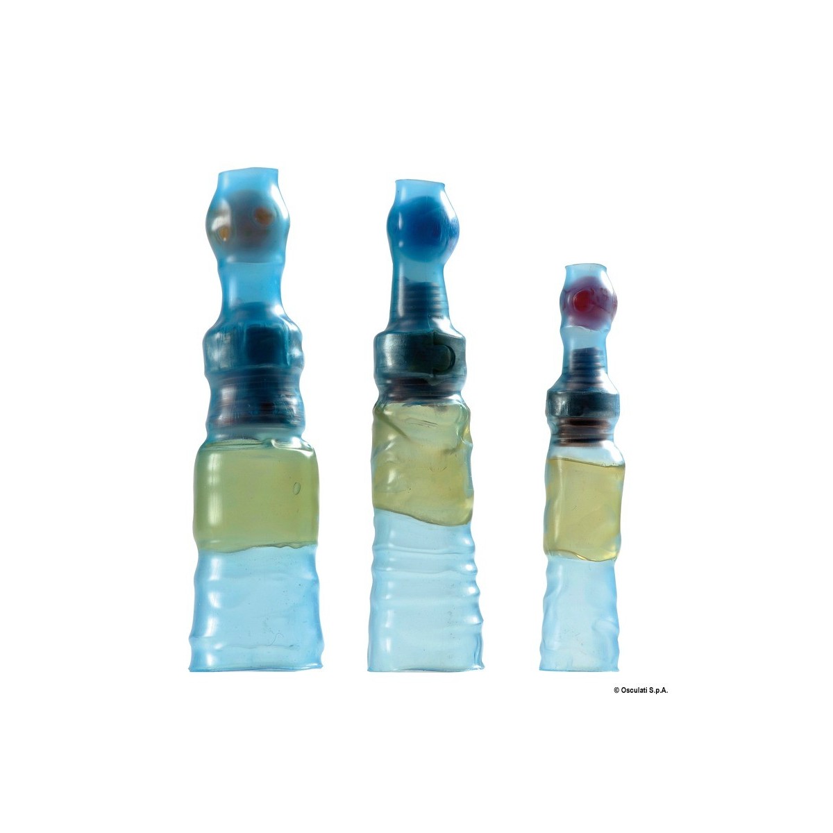 In a single operation (using our industrial heating gun 14.122.12 or a simple lighter), they can be used to make a completely watertight electrical connection between insulated heads. The connection is made by soldering, which ensures a reliable electrical connection even where there are many small cross-section cables, or mixed cables with different cross-sections.