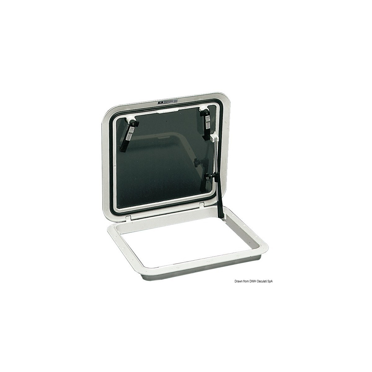 The white 304 x 302 mm Flushdeck deck hatch is made entirely of sturdy polycarbonate to meet the demands of ocean cruising. It features interlocking handles, inside closure and smoked polycarbonate crystals to reduce glare.