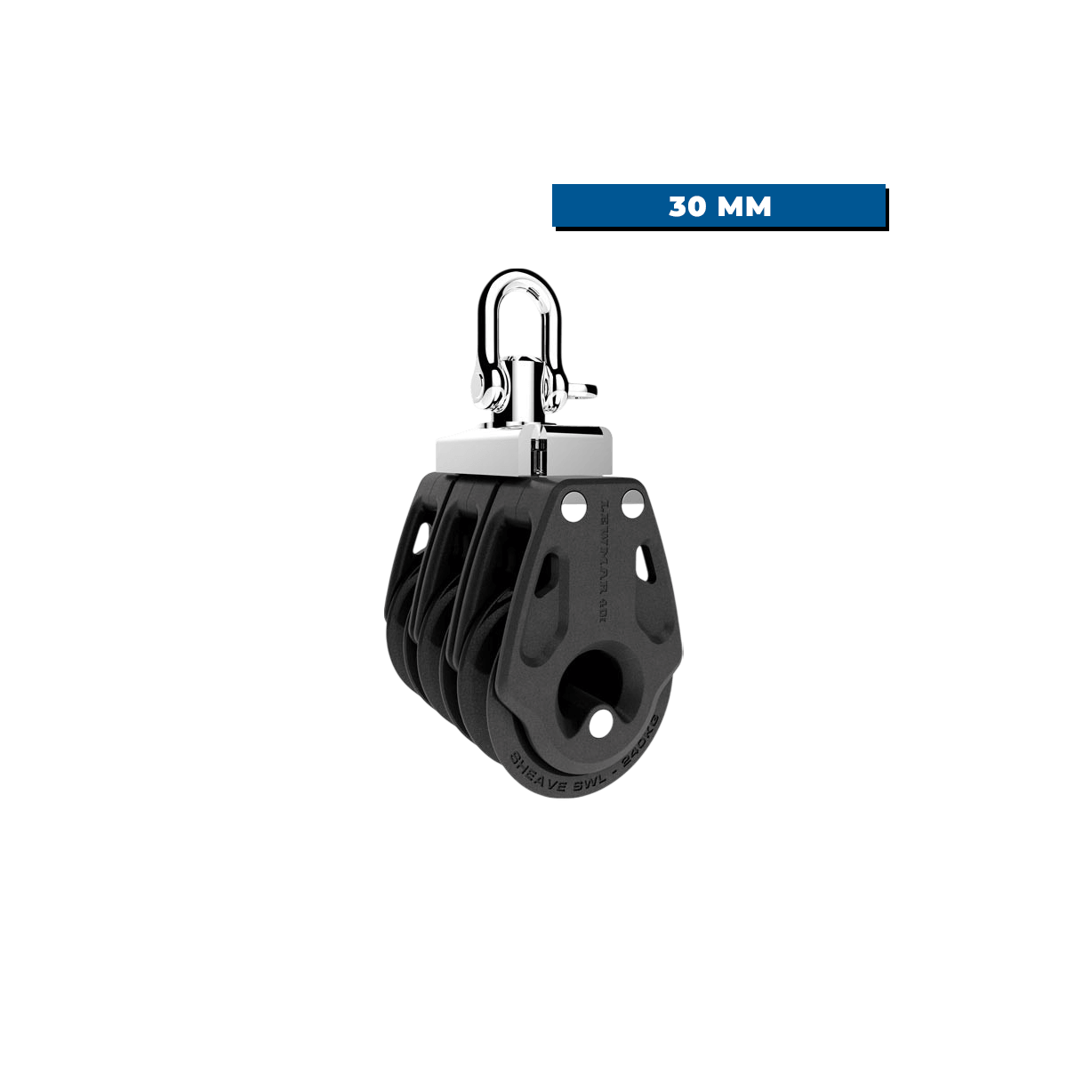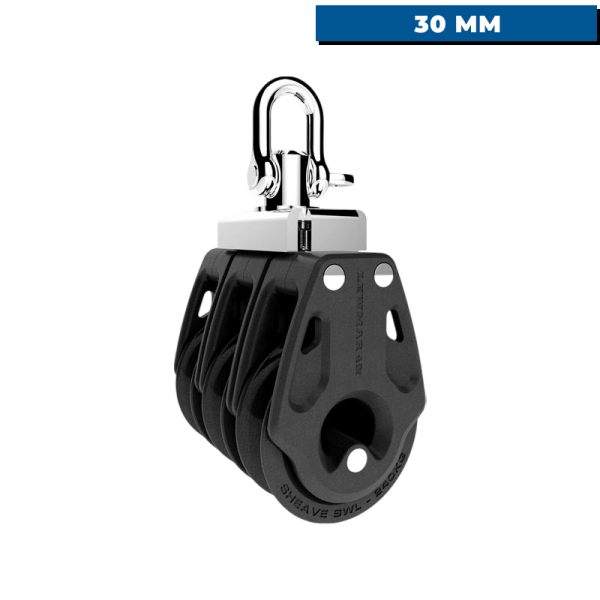 The Control triple pulley Lewmar 30 mm weighs just 85 g and supports a 500 kg working load. Ideal for hand-held adjustments, its stainless steel ball bearing reduces friction and improves smoothness. Technology MRT, long fibers and ventilated cheeks ensure shock resistance and easy rinsing of sand and salt.
