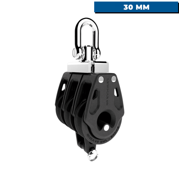 The Lewmar Control triple pulley with 30 mm ring weighs just 90 g and supports 500 kg working load, ideal for manual adjustment and control of ropes on dinghies and small cruisers. Its MRT technology and stainless steel ball bearings reduce friction, offer reliable load-holding and good shock resistance. Ventilated cheeks for easy rinsing of sand and salt.