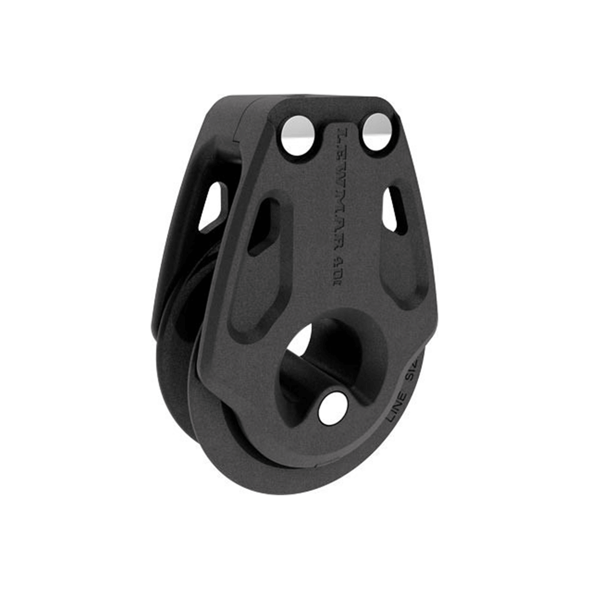 The Lewmar Control strap-on pulley with 40 mm sheave is ideal for manual adjustments and hand-held loads. Weighing just 40 g, it supports a working load of 240 kg and reduces friction thanks to its stainless steel ball bearing. Its MRT long-fiber design resists shocks, and its ventilated cheeks facilitate salt and sand rinsing.