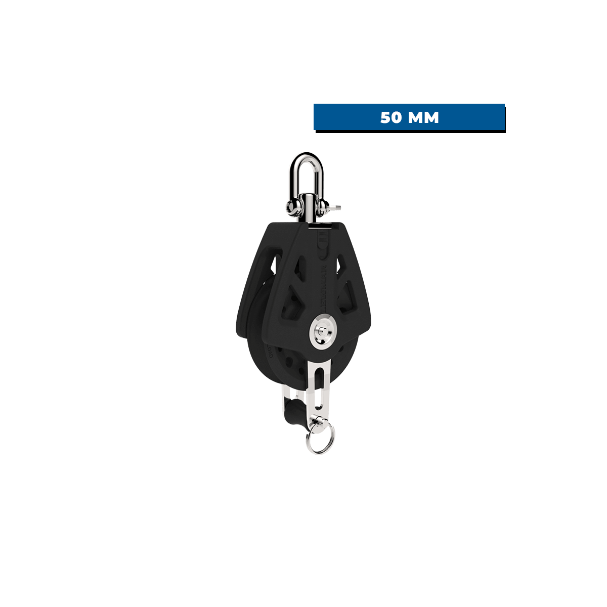 The Lewmar Synchro 50 mm single-ring block, designed for maximum speed and efficiency on board. Thanks to its optimized geometry and composite bearing, it significantly improves the efficiency of-mainsail hoists, while reducing friction on the rope for smoother operation. Its stainless steel flange provides real strength over time, while the stiffened cheeks limit the risk of jamming.