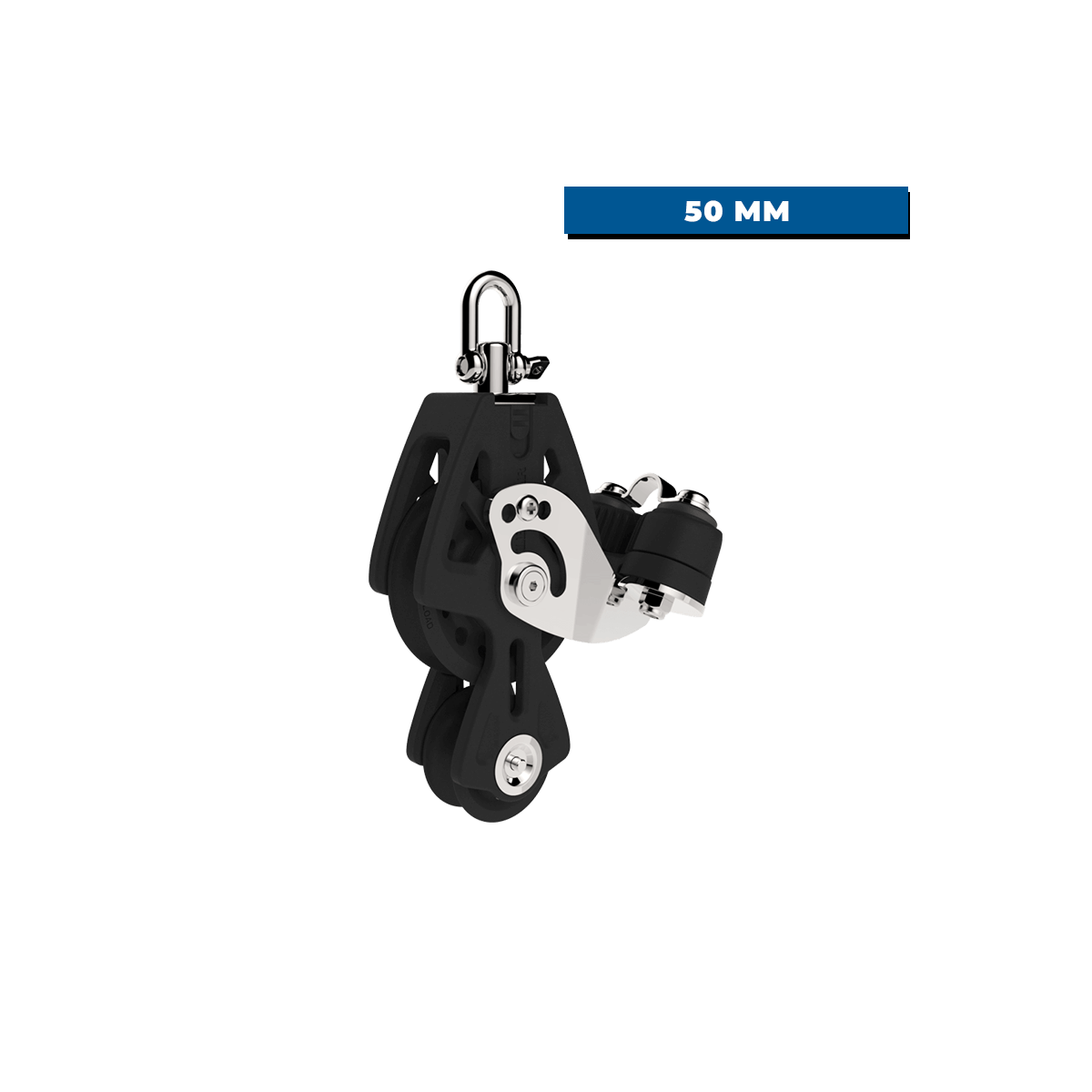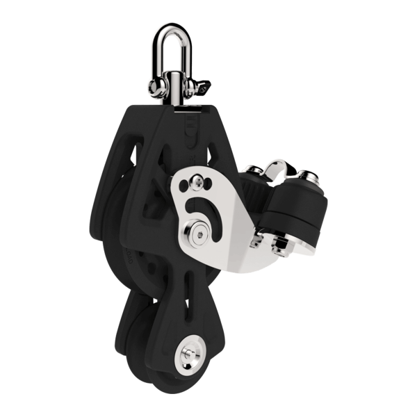 The Synchro Fiddle block with 50 mm cleat is designed to optimize your-mainsail hoists, with up to 40% greater efficiency and smoother rope guidance, while reducing friction. Its stainless steel flange and rigid fiberglass-reinforced cheeks ensure strength and durability, while preventing rope jamming. The swivel can be locked without tools, and is easily converted from fixed to swivel position to adapt quickly to your manoeuvres.