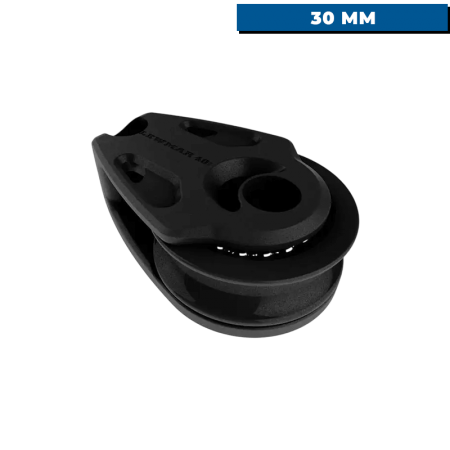 The Lewmar Control plat-ball-bearing deck block with 30 mm sheave is mounted flush with the deck for clean rope passage and precise manual adjustment. Ultra-light at 19 g, it supports a working load of 200 kg and reduces friction thanks to its stainless steel ball bearing. Its MRT long-fiber design resists shocks, and its ventilated cheeks make it easy to rinse off salt and sand.