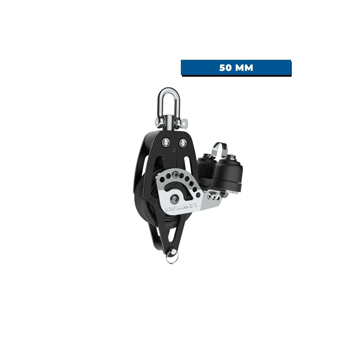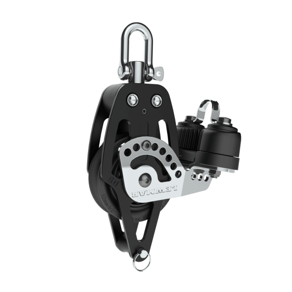 The HTX Lewmar 50 mm single pulley with ring and cleat is designed for frequently adjusted operations, even under heavy loads. With just 320 g on the scale, it remains compact while accepting a working load of 800 kg, while the cleat is designed to work up to 120 kg. Its optimized bearing ensures smooth, reliable rotation with modern thin ropes, and performance improves at-over 450 kg thanks to the self-lubricating acetal sheave-.