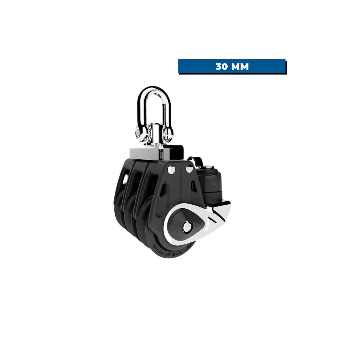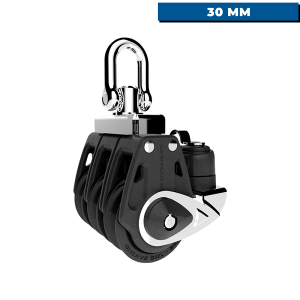 Control triple pulley and cleat - 30 mm