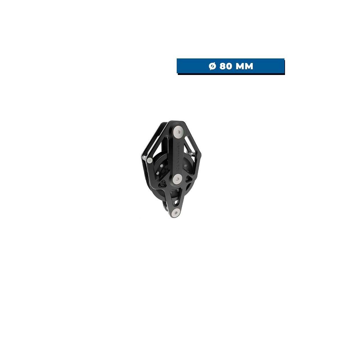 Its 80 mm sheave, combined with an impregnated composite bearing and Delrin side balls, ensures smooth, even rotation for a maximum working load of 2,000 kg.