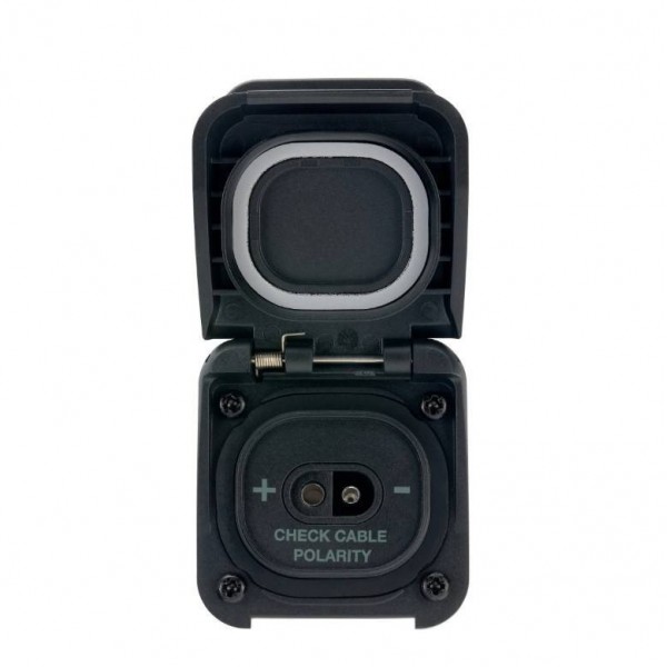 The SAE Ventura Series Solar Connector creates a clean, reliable connection point for your solar panels. No more makeshift cable runs: you plug in your external panel when you need it, then close the cover.