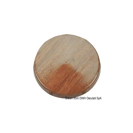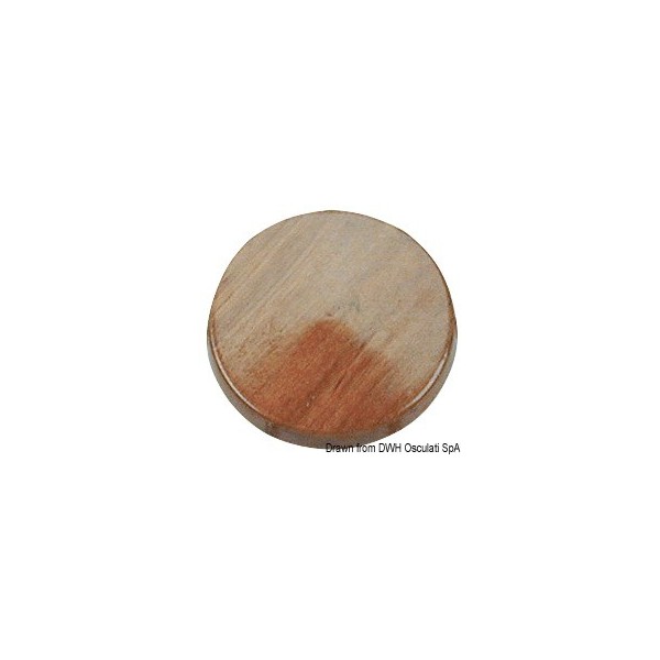 Teak center cap compatible with polished stainless steel 5-spoke steering wheel.