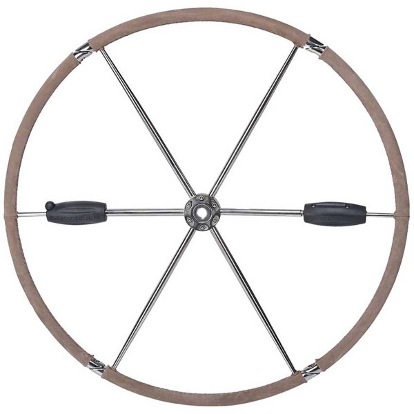 Leather-covered boat wheel Ø 813 mm, 6 stainless steel spokes