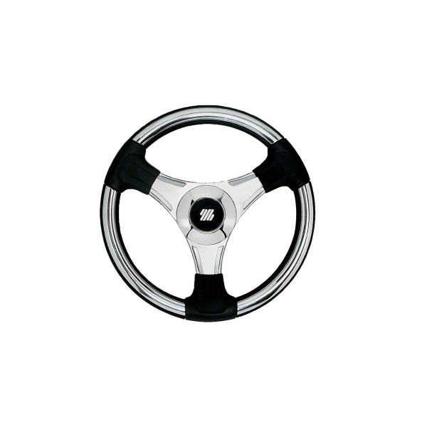 The Budelli steering wheel from the Italian brand Ultraflex is equipped with 3 polished aluminum spokes and chrome inserts. It also features a 3/4" bore and chrome trim.