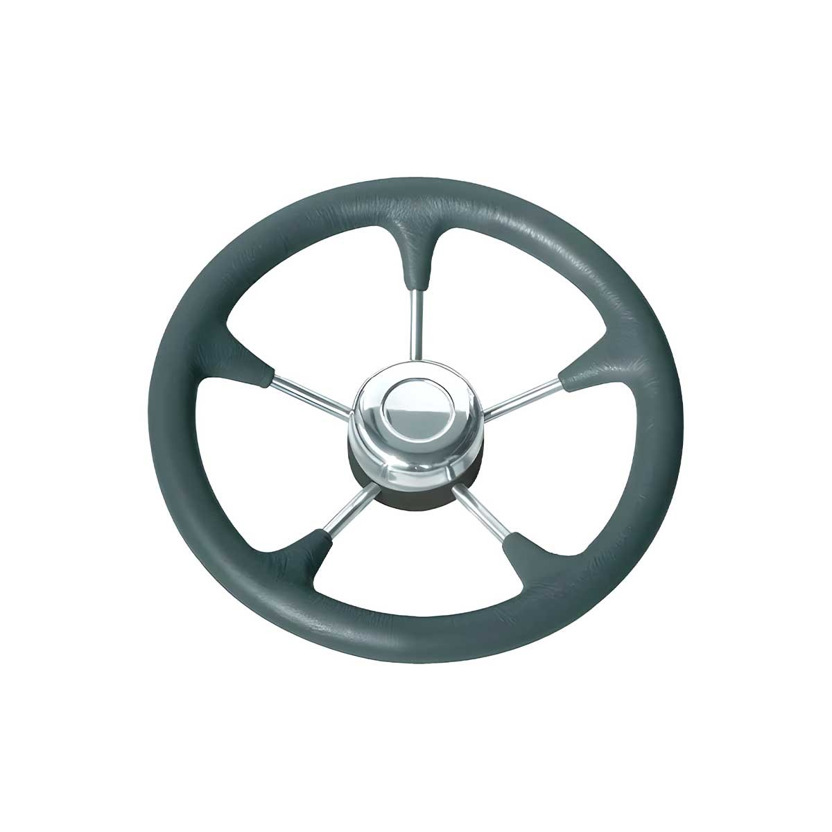 The T9R steering wheel in soft black polyurethane with stainless steel spokes features a universal cone for compatibility with Ultraflex, Morse or Teleflex cables.