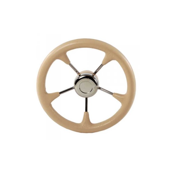The T9R steering wheel in soft cream polyurethane with stainless steel spokes features a universal cone for compatibility with Ultraflex, Morse or Teleflex cables.