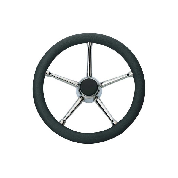 The T17 Ø 35 cm black polyurethane steering wheel with 5 stainless steel spokes will fit perfectly into your steering console.
