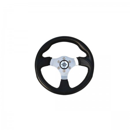 The black Tender steering wheel features mirror-polished stainless steel spokes with a soft polyurethane rim for improved grip.