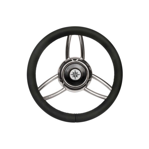 With its polished stainless steel frame and soft black polyurethane crown finished in imitation-leather with internal stitching, the Blitz steering wheel has an elegant, modern design for your cockpit.