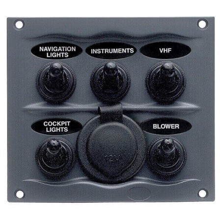 Switchboard with 5 20A switches + cigarette lighter IP56