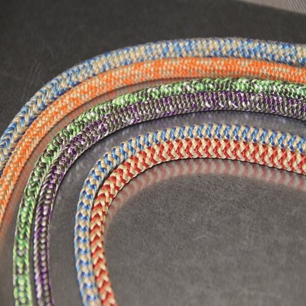 Core: standard 16-strand Dyneema SK78 braid, tightly woven with grey sizing.