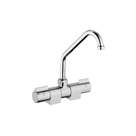 Double faucet. Deluxe chrome-plated brass mixer, fold-down spout Ø14mm H182mm L142.6mm 3/8M thread.