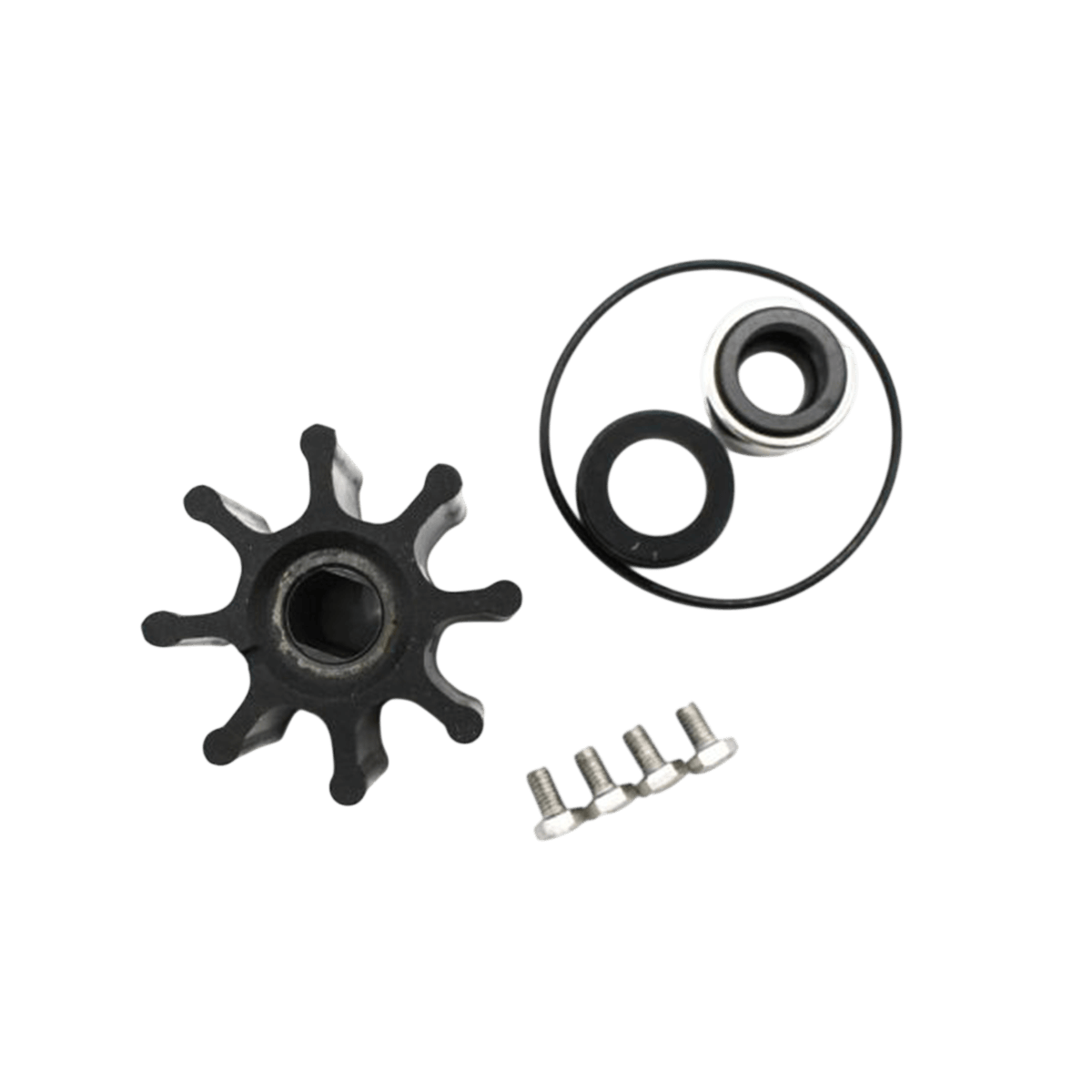The Jabsco service kit is designed for maintaining the 080 utility pump (53080 series) and helps restore reliable onboard flow. It includes a nitrile impeller, a gasket, O-rings, and the cover screws, for a quick overhaul during preventive maintenance or troubleshooting