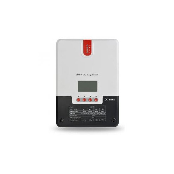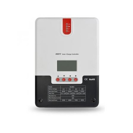 Photovoltaic charge controller with Maximum Power Point Tracking (MPPT) algorithm, which not only allows PV modules to be operated at full capacity even in changing or degraded sunlight conditions, but also enables the use of non-standard voltage modules and simplifies wiring by connecting modules in series rather than in parallel.
