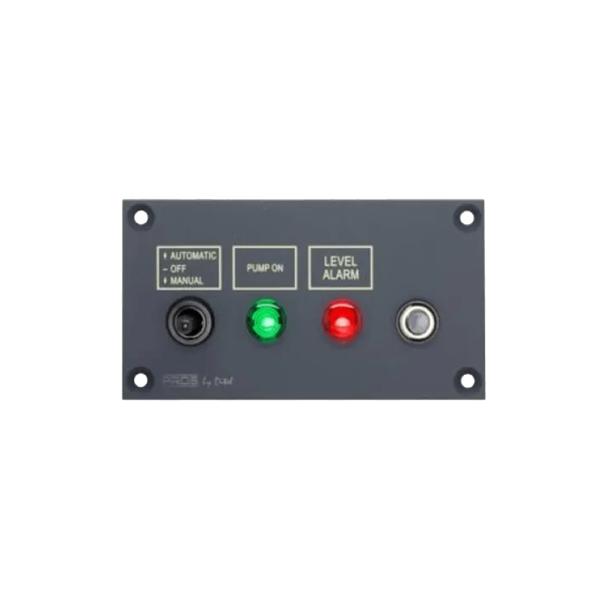 The PROS by Ditel bilge pump control module controls a 12/24 V pump with a current rating of 10 A. It incorporates an auto-off-manual switch, a green operating indicator, a red level alarm indicator and a resettable thermal fuse, for clear, reliable and safe on-board pump management.