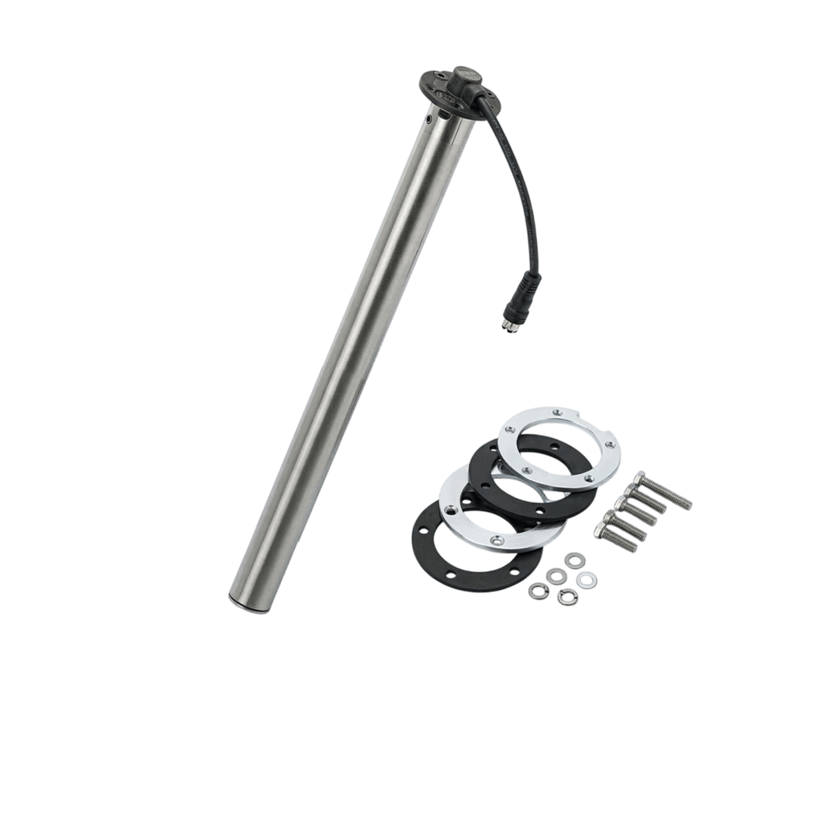 Level sensor Veratron VDO with Ø54 mm tube in 316 stainless steel, 700 mm long, ideal for easy monitoring of on-board fuel or water tank levels. Non-contact technology for reliable measurement, with analog signal empty-full 90-4 Ohms and 6-24 V DC power supply. SAE 5-hole 54 mm mounting, TE Superseal 2-pole IP67 connector, perfect for marine environments.